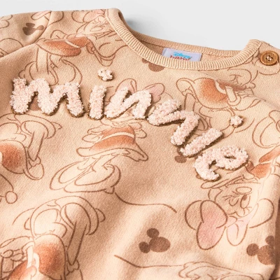 Introduce your little one to the Disney world by dressing them in the Disney Solid Top and Bottom Set. This brown outfit set for babies includes a French terry sweatshirt with the name “Minnie” written with embroidery and a matching jogger pant, both covered with an illustration of Minnie and her face for a cute look. The jogger pant comes with full elastic waistband that helps keep it in place, while the cinched hem provides a snug fit. Made with soft fabric, this Minnie top and bottom set helps keep them comfy and cozy.