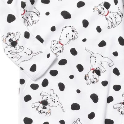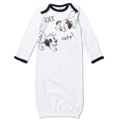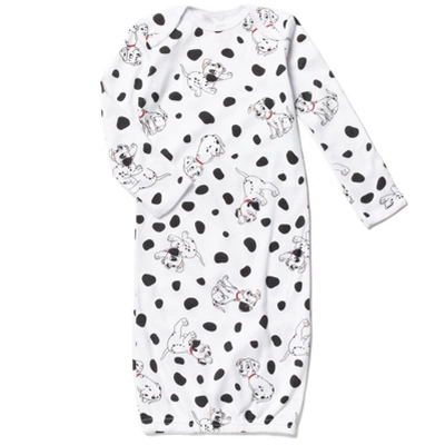 Give your little one the gift of Disney magic with this cute and comfy 101 Dalmatians Sleeper Gown 2 pack. These stylish clothes feature artwork of Patch and the rest of the spotted dogs from the iconic Disney movie. Watch unforgettable scenes and worlds from your favorite Disney animated movie come to life through your childâs joyful experience of this timeless classic. Wearing this Disney Classics 101 Dalmatians Long Sleeve Swaddle Sleeper Gown, your child will shine as they create fun new memories.