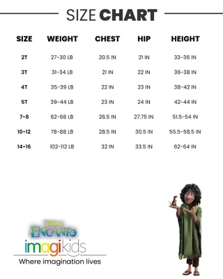 Join Mirabel Madrigal and her family for a magical adventure in this Disney Encanto Hoodie. Save the miracle candle with Mirabel, stay strong like Luisa, grow flowers with Isabela, and donât forget that we donât talk about Bruno! Watch your kid discover their own magic dressed in this cute, comfy and stylish long sleeve graphic hooded sweatshirt.