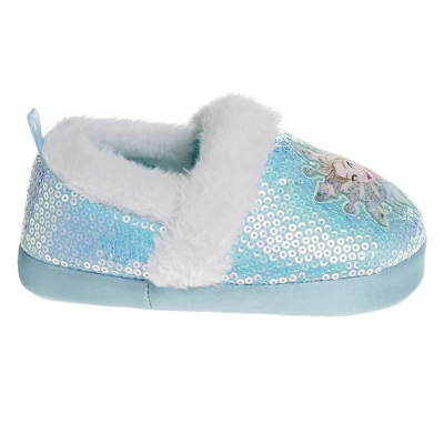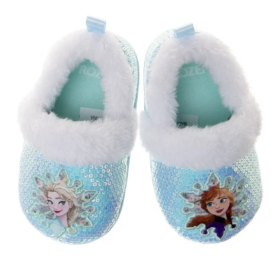 Disney Frozen “Happy Sisters” Toddler Girls’ Dual Sizes Slippers. It’s the perfect footwear choice to relax or play in the house, Padded footbed and a textured sole to prevent slips. Features a beloved Cartoon Character it will make your kid want to wear these every day, Easy wear design, your kid can put these on all by herself.