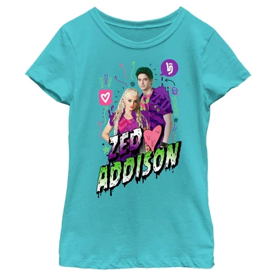 Join the students of Seabrook High and their new Zombietown friends with this officially licensed Disney Zombies Zed and Addison Tee! This adorable Girls’ Tee features Zed and Addison with high school stickers and doodles around them. Get this stylish tee today and show off how much school spirit you really have!