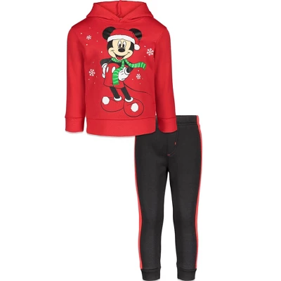 Disney Mickey Mouse Christmas Fleece Pullover Hoodie And Pants Outfit Set Infant To Little Kid