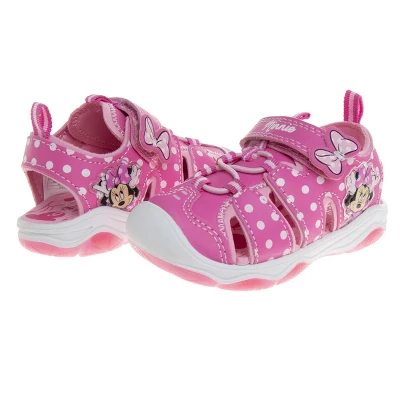 - DISNEY MINNIE MOUSE SHOES: Minnie Mouse light up Disney shoes are an officially licensed girls footwear product. These toddler girls sandals are designed with her favorite Minnie Mouse Characters.