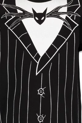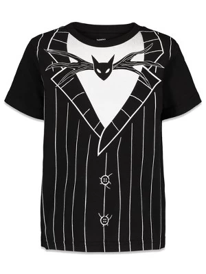 Join Jack Skellington, the Pumpkin King, as he stumbles from Halloween Town to Christmas Town and becomes awed by the festive winter holiday. Help Jack, Sally, Zero the dog, and the other citizens of Halloween Town celebrate and successfully take over Christmas from Santa Claus—without getting Oogie Boogie involved this time! Get your little one ready for this exciting, spooktacular, jolly adventure with this Disney Nightmare Before Christmas Short Sleeve T-Shirt. With artwork featuring their favorite skeleton character in his cool pinstripe suit, your kid will love wearing this [PieceDescriptionKeywords].