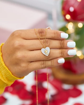 - This necklace is made of sterling silver with yellow gold plating and cubic zirconia studded pendant.