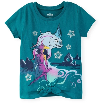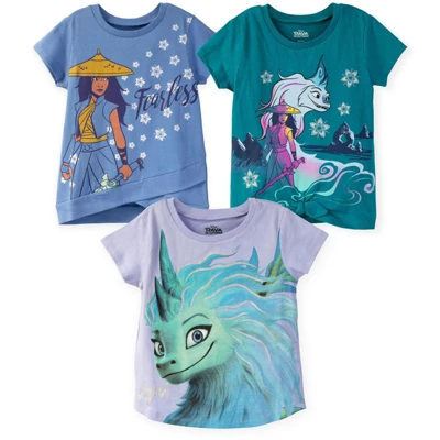 Give your little one the gift of Disney magic with this Raya and the Last Dragon short sleeve graphic tee shirt. Join the newest Disney Princess as she journeys with her noble part-pill-bug, part-armadillo, part-pug steed Tuk Tuk through the world of Kumandra in order to find the last dragon, Sisu, and bring harmony back to the land. Along the way, help Raya battle against her formidable nemesis, Namaari of the Fand lands. Watch as Raya’s fierce warrior guardian comes to life through your little oneâs adventurous and determined nature. Your little princess will love this Disney Raya 3 Pack Crossover Graphic T-Shirts featuring her new favorite animated character so much, they will always want to wear it.