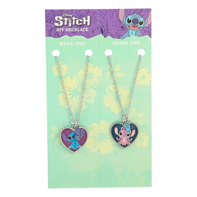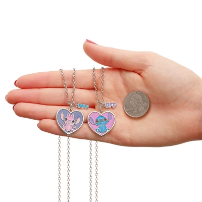 - Officially Licensed Disney Accessories: Celebrate friendship and ohana with this authentic Angel and Stitch necklace set. Heart charm necklaces have BFF charms in different colors. One necklace showcases Stitch and the other displays Angel