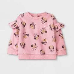 Disney Baby Girls’ 2pc Minnie Mouse Fleece Pullover And Jogger Set – Light Pink