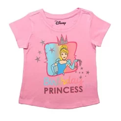 Disney Girl’s Cinderella Birthday Princess Glitter Print Short Sleeve Graphic Tee For Kids