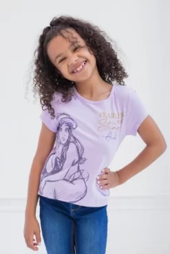 Disney Princess Ariel Cinderella Tiana Moana Jasmine Belle Girls 3 Pack T-Shirts Toddler To Big Kid
