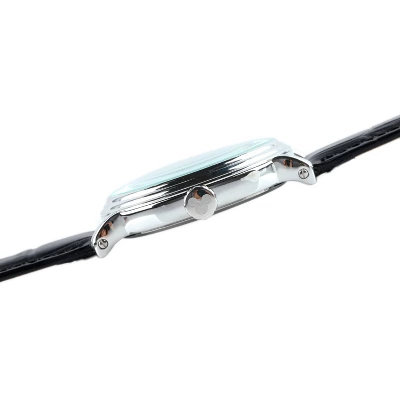 Black (dial), Leather (band), Mineral (face), Alloy (hardware)