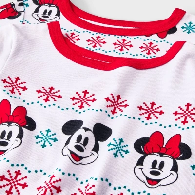 Make the holiday season more special for your toddler by adding this 4-Piece Disney Cozy Holiday Minnie and Mickey Fair Isle Pajama Set to their sleepwear collection. This four-piece pajama set includes two pajama pairsâ one with a long-sleeve sleep shirt and PJ pants, both covered with Fair Isle pattern along with Minnie and Mickey faces, and the other with a printed long-sleeve sleep shirt and a pair of snowflake-print pajama pants. Made with soft fabric, the pieces offer comfort all night long.