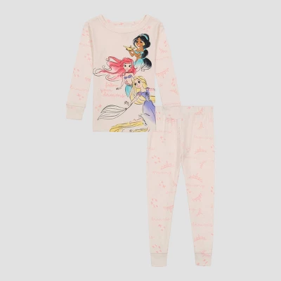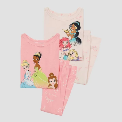 Add beautiful princesses to your little one’s sleepwear with this 4-Piece Disney Princess Snug-Fit Pajama Set. Two pairs of long-sleeve sleep shirts and PJ pants are included in this coordinating pajama set, each with a pull-on design for ease of dressing, 100% cotton construction for all-night comfort, and banded edges and elasticized waistbands for a stay-put fit. The ivory pajama pair showcases Jasmine, Ariel and Rapunzel on the tee, and the other pink PJ pair features Tiana, Cinderella and Belle. Both sleep pants have typographic and printed designs for a fun look.