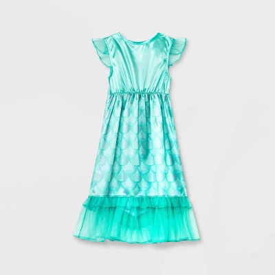 This Disney Princess Ariel Dress-up Nightgown will help keep your little one looking and feeling as adorable as ever, whether it’s time for a Disney-themed sleepover party or just drifting off to dreamland. The blue nightgown features Ariel on the front and a mermaid scale print below the waist to complement the look. Tailored with soft and lightweight fabric for comfort, this Ariel nightgown is finished off with short flutter sleeves and a ruffled hemline, both in mesh fabric for a sweet look.