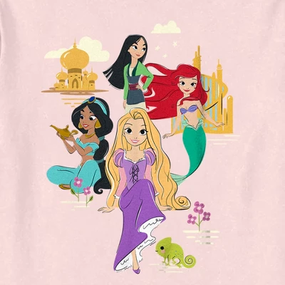 If you can’t decide which of the princesses is your favorite⊠now you don’t have to! Celebrate all of your favorites with this officially licensed Disney Cartoon Princesses Toddlers’ Graphic T-Shirt. This tee features Mulan, Rapunzel with the cute Pascal, Ariel, and Jasmine with their castles in the background! Surprise your toddler with something cute today with this new graphic tee that is perfect for Disney fans of all ages!