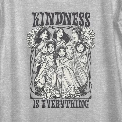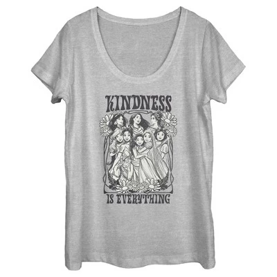 - Strut your stuff with this stylish new every day women’s scoop neck t-shirt that is perfect for every occasion! Featuring Ariel, Snow White, Belle, Tiana, Jasmine, Moana, Rapunzel, and, Pocahontas with the phrase: “Kindness is Everything.”